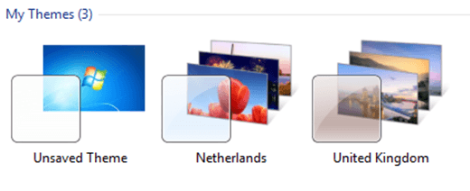 That’s all there is to it. You should now have several new country themes available in your Windows 7 themes library. Right-click on your desktop and select personalize. You should now see your new themes listed.
